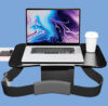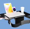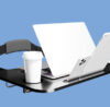 A hands-free portable device holder is an apparatus that comfortably and safely upholds a portable device such as a tablet or laptop around the waist of a user. The apparatus includes a support belt, a tabletop, and a position-locking mechanism. The support belt wraps around the waist of the user and is length-adjustable. The support belt also includes a first padded brace and a second padded brace that cushion the lower abdomen and the lower back of the user. The tabletop supports the portable device. The tabletop also includes a pullout tray to accommodate any accessories or small items that need to be or is preferably positioned beside the portable device. The position-locking mechanism positions and secures the desired orientation of the tabletop with the support belt, and consequently the torso of the user. The tabletop freely rotates about the support belt and is easily locked into a desired position.